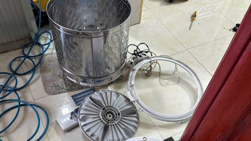 Ngoài ra, lỗi báo mã lỗi (như F1-F6 trên máy Samsung hoặc Electrolux) thường liên quan đến cảm biến hoặc bo mạch. Chúng tôi sử dụng phần mềm chẩn đoán chuyên dụng để đọc mã lỗi, sau đó reset hoặc thay thế linh kiện. Một lỗi ít gặp hơn nhưng nghiêm trọng là máy có mùi khét, do ngắn mạch hoặc quá tải. Trong trường hợp này, chúng tôi kiểm tra toàn bộ hệ thống an toàn, lắp thêm cầu chì bảo vệ để tránh cháy nổ.